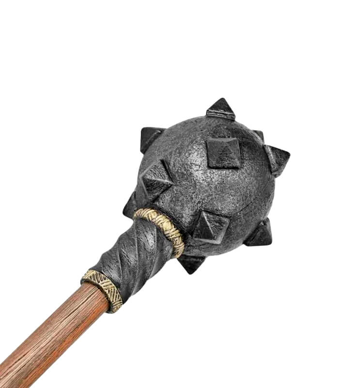 As you ascend toward the spiked head, the haft transitions into a twisted steel-like design, leading to a mace head featuring pyramid-shaped spikes with square bases. This meticulous design ensures not only an authentic look but also a weapon that feels fantastic in your hands.